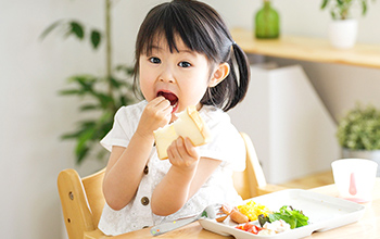 3歳になると上下の歯がかなり生え揃ってくるため、しっかりとしたむし歯対策が欠かせません。丁寧な仕上げみがきを継続してください。また、食べるもののバリエーションが広がり、保育園などで食事やおやつを食べる機会も増えてきます。甘い飲み物を避ける、おやつをダラダラと食べないなど、生活習慣にも注意が必要な時期です。